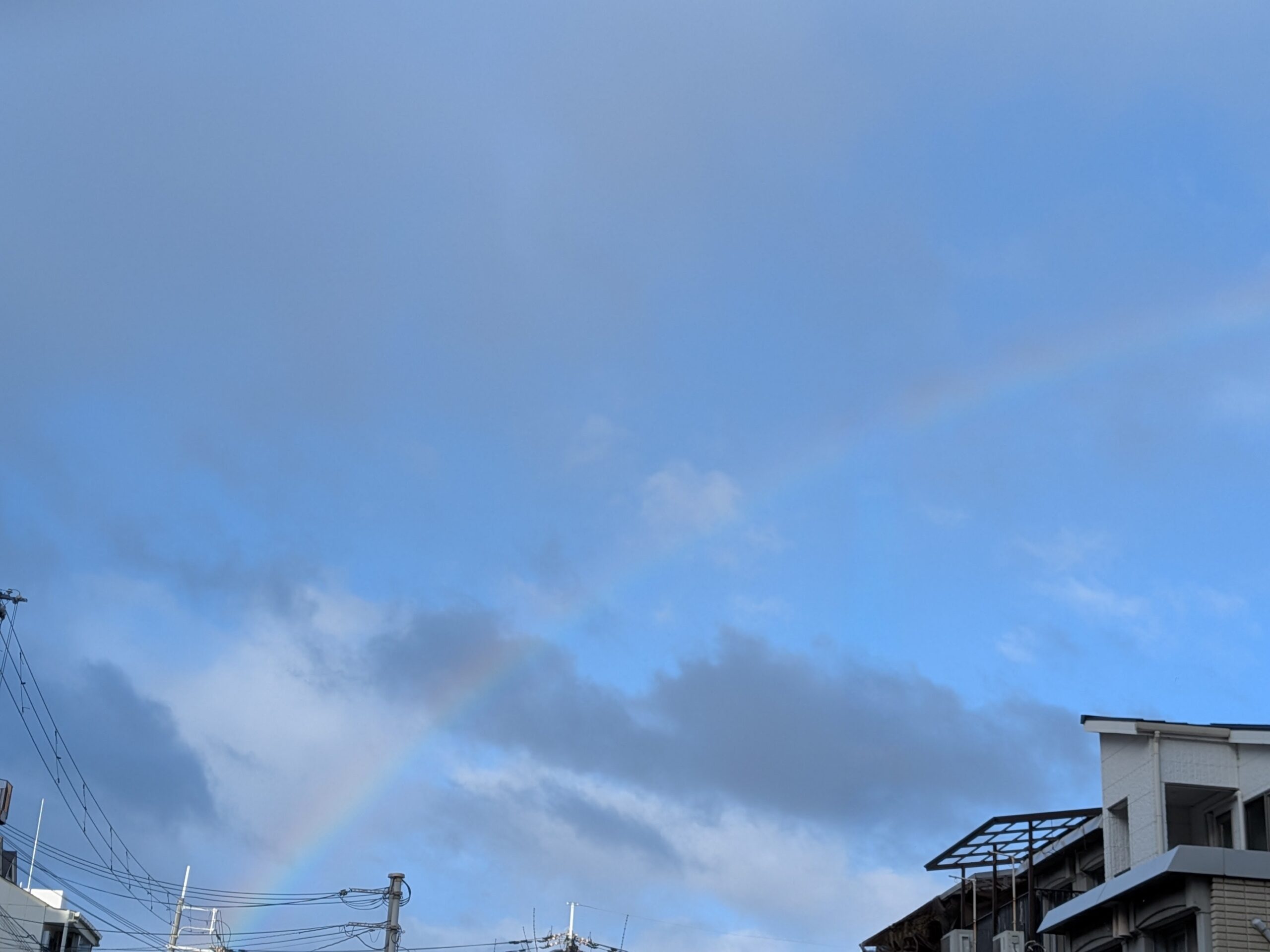 そんな中、たまたま前を歩いていた小学生が虹に気づきました。